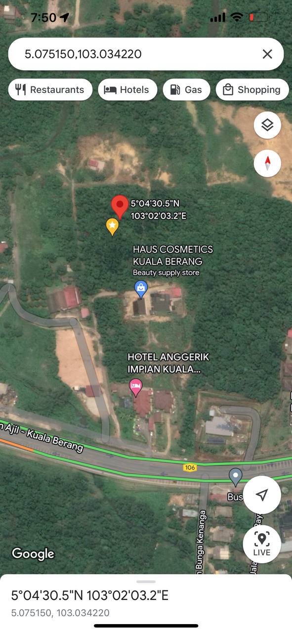 Lokasi: Jalan Ajil-Kuala Berang, Belakang Hotel Anggerik Impian Kuala Berang. (5°04’30.5″N 103°02’03.2″E)